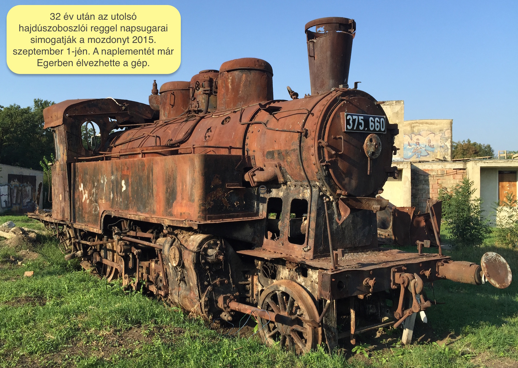Mivel a mozdony sorsának jobbra fordulására a hajdúszoboszlói helyszínen nem volt remény, így a 375,660 Egerbe szállítása lett az elsődleges cél, amely 40 tonnás óriások mozgatásában kevésbé jártas civilek számára nem kis kihívást jelentett.
